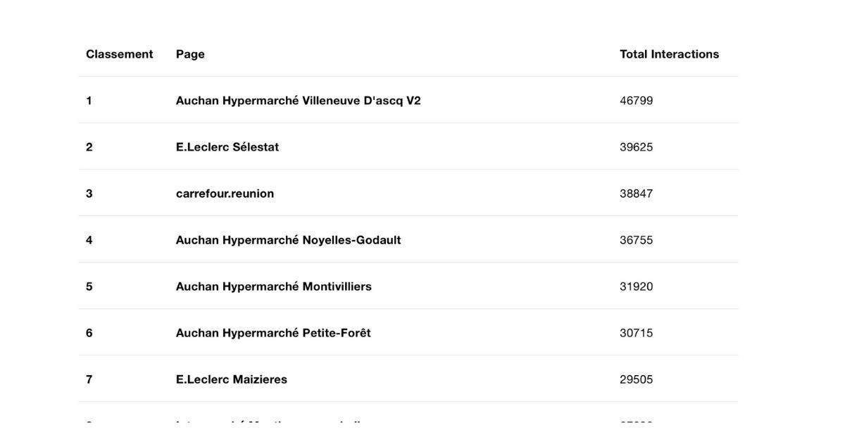- en mars, E.Leclerc Saint-Aunès était 1er avec 2194 interactions ;