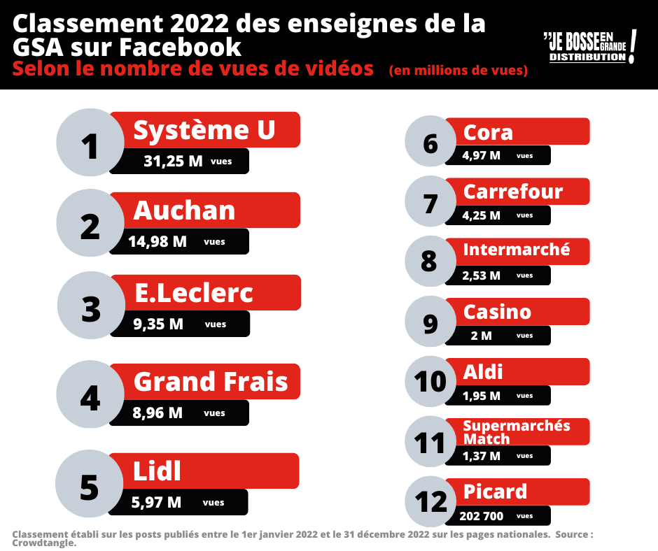 En parralèle, voici le classement des enseignes en fonction des publications vidéos :
