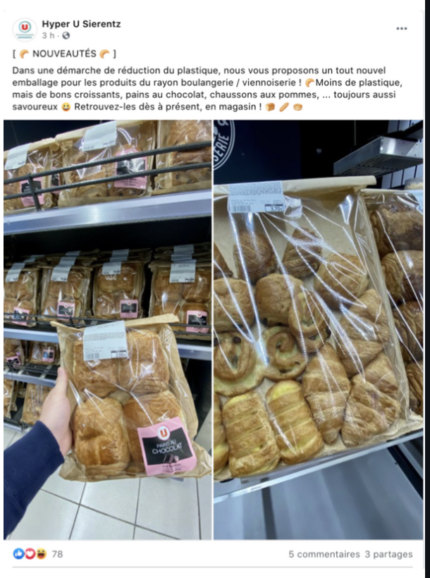 Michel-Édouard Leclerc en a fait un combat au début des années 2000. Le plastique disparaît aujourd'hui progressivement dans les magasins. Remplacés par des sacs krafts, des filets en coton ou encore des sacs en toile de jute, le plastique finira pas disparaître complètement dans les prochaines années. Quelques rayons peinent encore à le remplacer totalement : le rayon viennoiserie en est un parfait exemple.