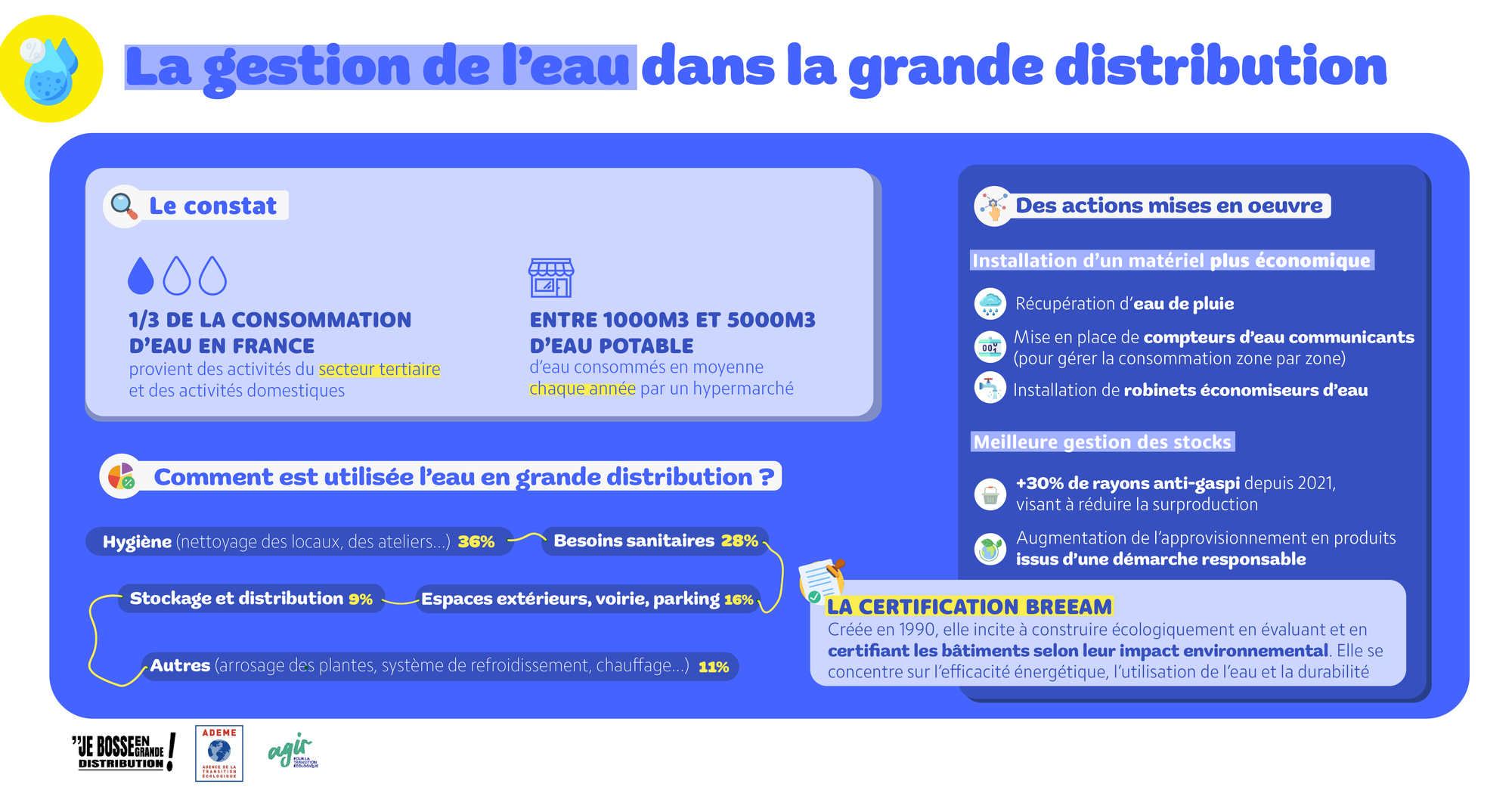 Tout comme l'énergie, l'eau fera l'objet d'un plan de sobriété. Carrefour a été une des premières enseignes à engager un objectif de réduction de la consommation d’eau de ses points de vente de 10% d’ici à 2025.