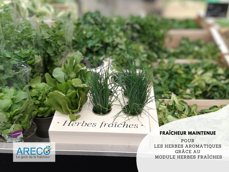 Un des autres procédés développés par ARECO consiste à réaliser des économies d’eau tout en maintenant la fraîcheur des herbes aromatiques en rayon.