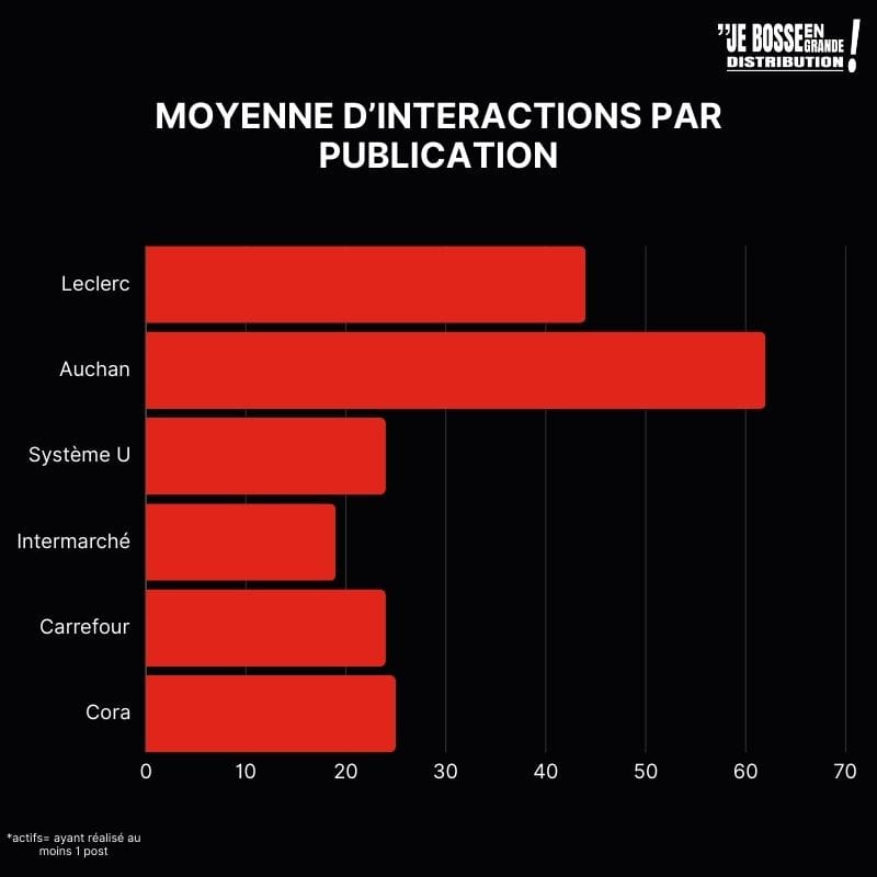 - Intermarché est en deçà avec 19 interactions / post en moyenne