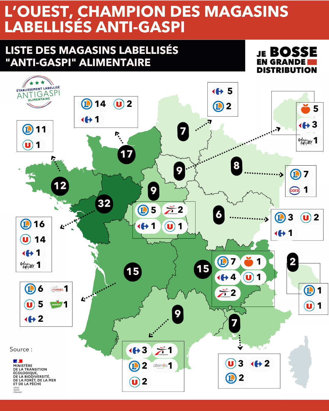 La lutte contre le gaspillage alimentaire s'impose aujourd'hui comme un enjeu majeur pour la grande distribution. Avec 147 établissements déjà labellisés selon le Référentiel Distribution, le label Anti-Gaspi alimentaire récompense les enseignes qui s'engagent concrètement dans cette démarche responsable. Découvrez quelles enseignes se distinguent et où les trouver. La liste complète est en bas de cet article.