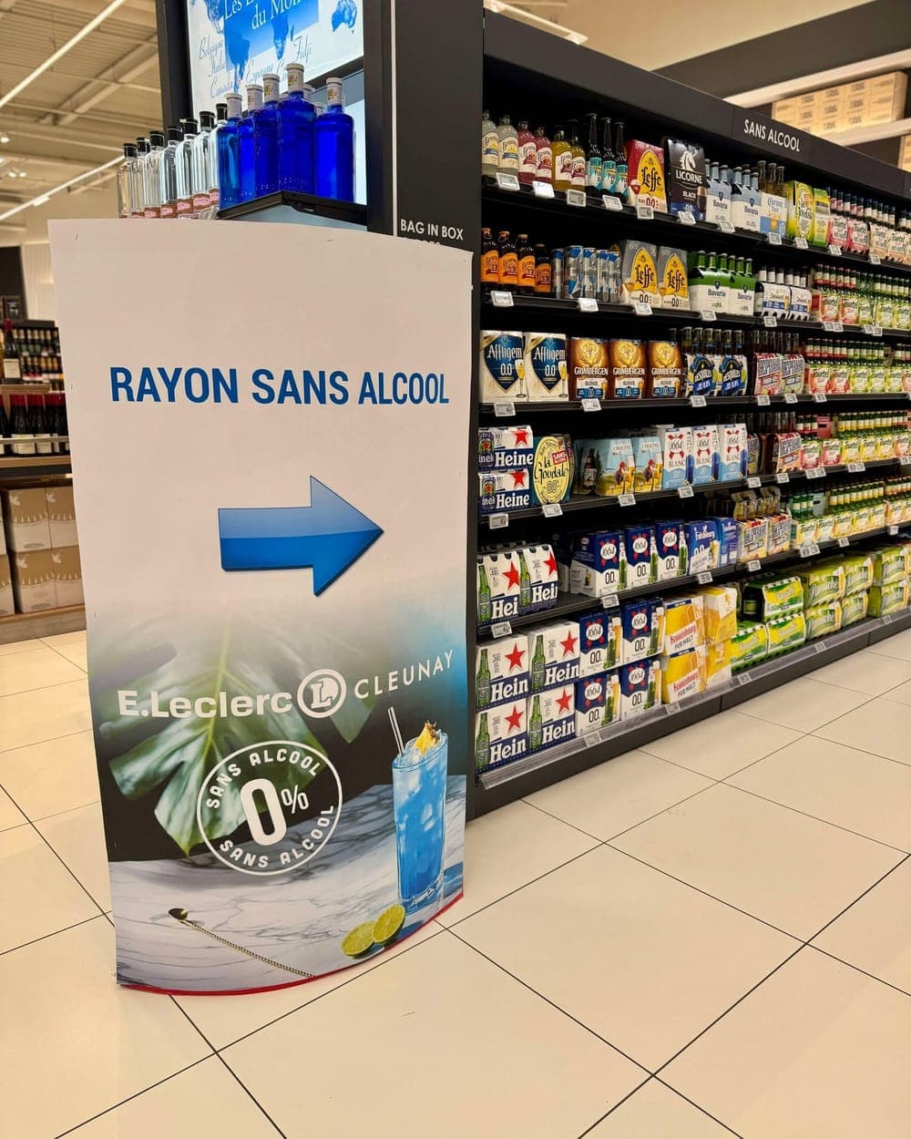 Résultat : bières 0.0%, spiritueux sans alcool (gin, apéritifs), et mocktails prêts à consommer se multiplient dans les linéaires. Certaines enseignes innovent dans le merchandising : Auchan a créé fin 2023 une "zéro zone" intégrant des spiritueux sans alcool directement au rayon spiritueux classique, pour faciliter la comparaison et le choix du consommateur. On le voit également émerger dans certains rayons chez Leclerc. Le salon professionnel "Degré Zéro", dédié aux boissons sans alcool, a attiré plus de 1000 visiteurs début 2025, un signal fort de la structuration du secteur.