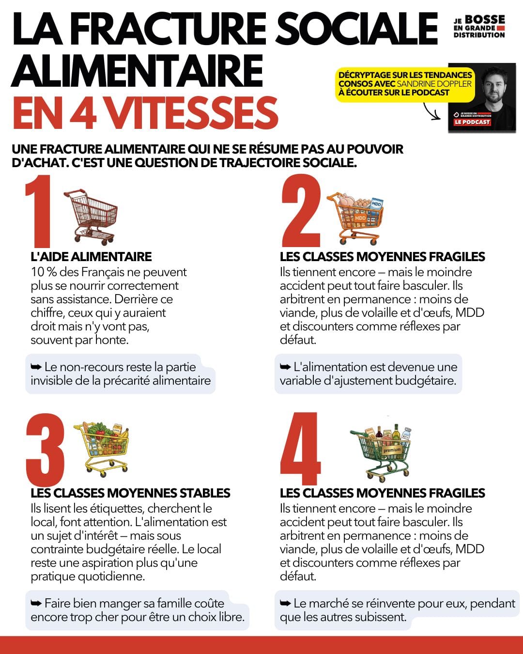 Analyste et prospectiviste, Sandrine Doppler scrute depuis des années les mutations silencieuses de notre rapport à l'alimentation. Auteure d'une newsletter suivie, animatrice du podcast State of Food, elle intervient auprès d'industriels, de distributeurs et dans les grandes écoles pour décrypter les usages qui redessinent nos assiettes. Dans cet épisode du podcast, elle livre une analyse sans concession : individualisation, fracture sociale, circuits courts mythifiés, plaisir sous pression et avenir alimentaire sous contrainte. Une conversation dense, lucide, parfois dérangeante.