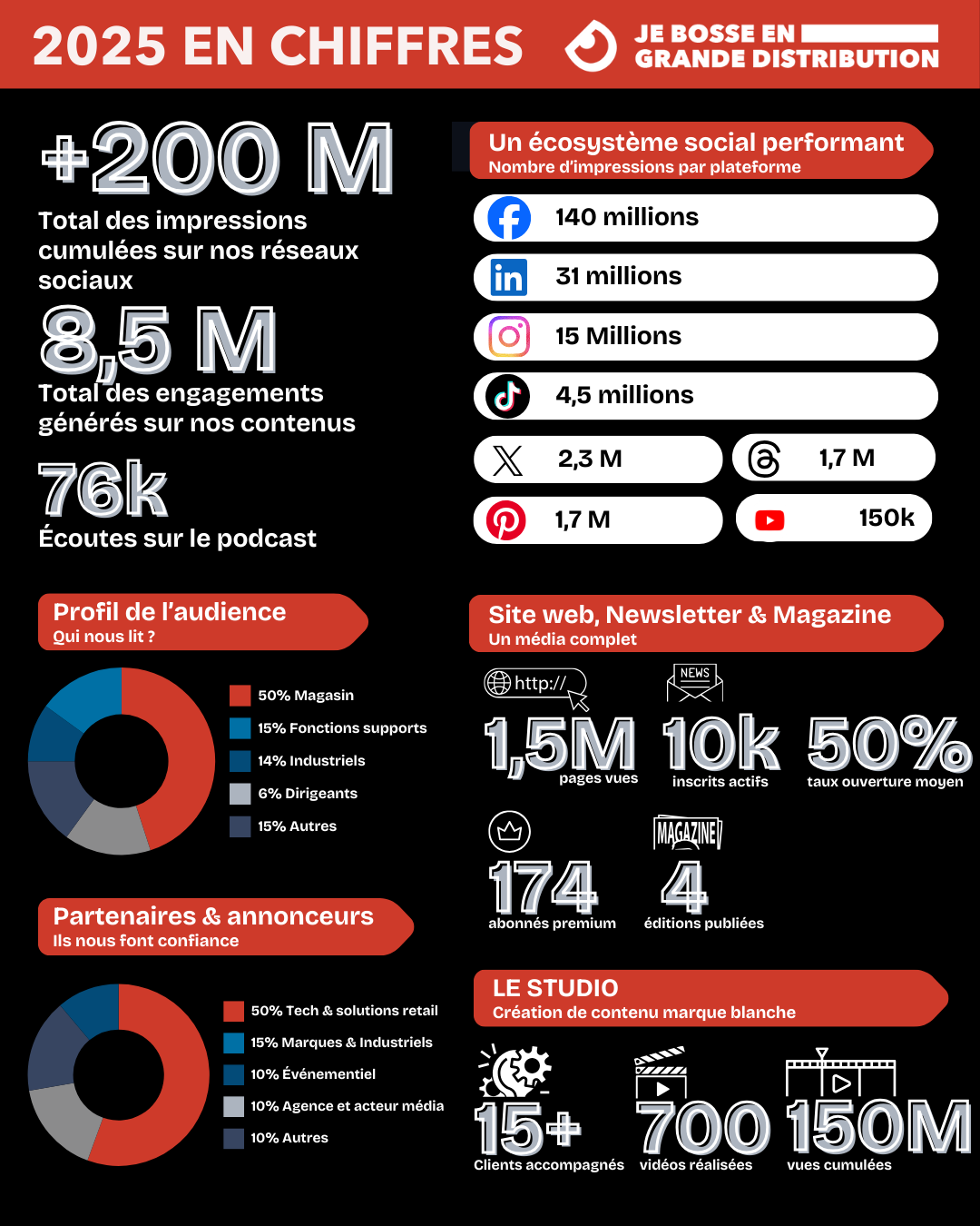 Nous ne cherchons pas à être le média que l'on feuillette. Nous sommes celui que l'on suit, qui génère des conversations, que l'on écoute et qui transforme le paysage de la Grande Distribution, une impression à la fois.